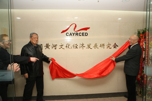 和原财政部部长、我会总顾问项怀诚一起为我会揭牌并合影