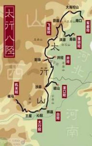 太行陉又称太行道,南起河南焦作沁阳,北接山西晋城市泽州县,是著名的“兵要首地”、“商旅通衢”。