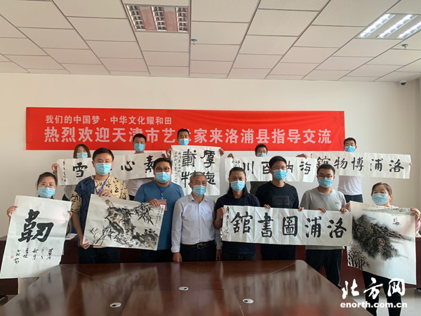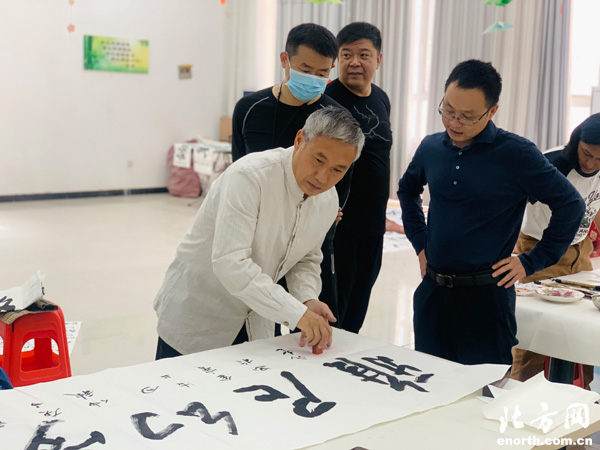 天津的书画家们与当地书画爱好者进行笔会交流。交流内容主要是书法、国画等传统文化形式,来自天津群艺馆的郝金宝、姚铸、李悦,津南区文化馆彭绍阳当场挥毫泼墨,为百姓现场创作书画作品上百幅。当地的书画爱好者与天津的书画家们进行了专业交流,共话书画艺术魅力,共同为优秀传统文化在祖国大地的传承、传播携手努力。
