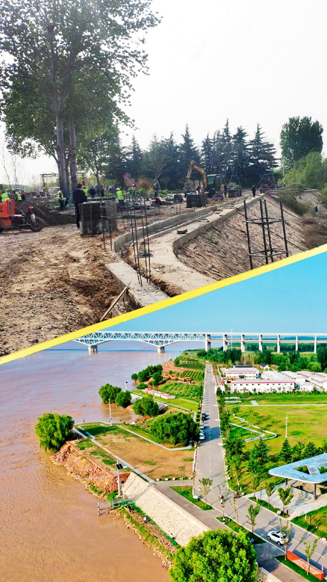 兰考黄河东坝头险工位于开封市兰考县东坝头镇。图为兰考东坝头险工生态环境整治前后。黄峰摄