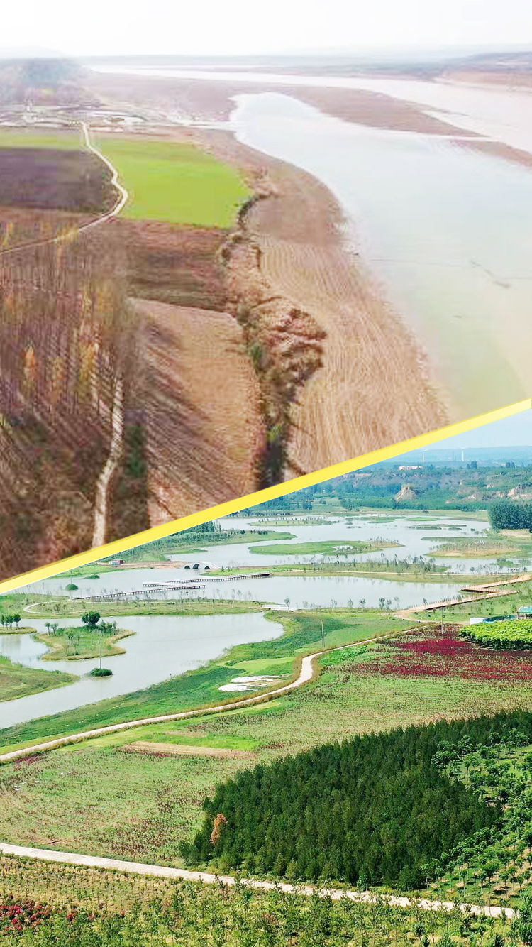 随着黄河战略的深入实施,郑州市积极践行“山水林田湖草是生命共同体”理念,围绕“自然风光+黄河文化+慢生活”,建设黄河滩地公园、沿黄生态廊道等项目,并穿珠成链,形成“水、滩、林、文化、产业”有机整合的城市沿河风貌。图为郑州马渡险工沿黄生态廊道建设前后。黄峰摄