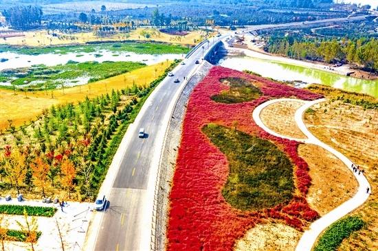 百里黄河生态廊道城乡一体化示范区淄阳河段秋色如画