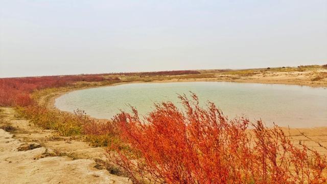 由于今年黄河河道北摆,去年有水的河道成了广阔的滩地,大片大片的野菜开始在这里滋生。芦苇这儿一块,那儿一簇,更多的是一种红色的水生植物,几乎填满了去年的老河道,从西向东,蔓延了数里的距离。