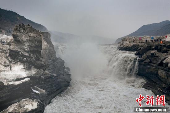 近日,气温回暖,黄河壶口瀑布冰消河开,瀑布水量增大,滚滚黄河水奔腾而下,飞溅起阵阵水雾,壶口瀑布再现往日壮美景观。陕西黄河壶口瀑布旅游区也将于2023年2月12日起恢复对外开放。图为黄河壶口瀑布冰消河开。霍勇 摄