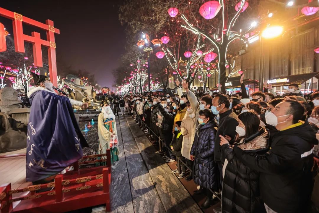 大唐不夜城丰富多彩的文化演艺活动,吸引众多市民游客驻足观赏。