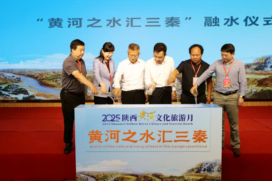 在全体与会代表见证下,中国黄河文化经济发展研究会会长张坚钟、榆林市人民政府副市长姬跃飞以及四川省、甘肃省、陕西省旅游协会、云南省工艺美术行业协会代表尹海生、朱彦杰、王新宇、徐兴所等,同时开启了“黄河之水汇三秦”融水行动,寓意着黄河沿线通过本届大会进一步融心融力,开启共建黄河文化旅游带新征程。