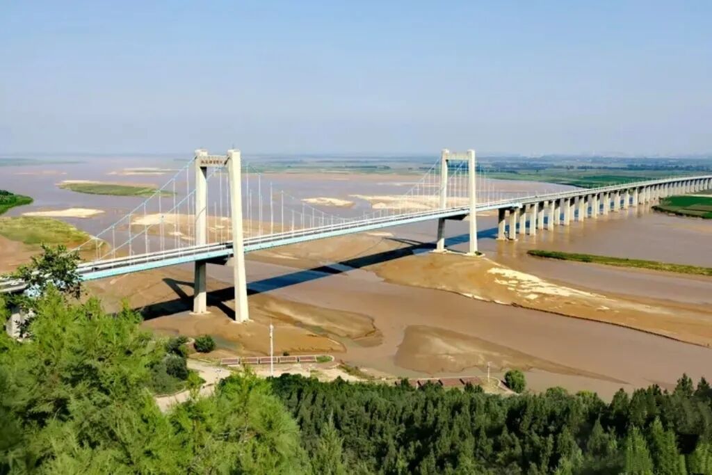 出禹门口后,黄河进入汾渭平原,河谷展宽,水流放缓,汾河、渭河、洛河等支流在此汇入。山西万荣汾河入黄口,可览汾河与黄河交汇的三角洲景观;运城盐湖是世界三大硫酸钠型内陆盐湖之一,被誉为“中国死海”,经 “退盐还湖” 生态修复后,盐湖风光愈加秀丽。山西永济的鹳雀楼,前瞰中条山,下瞰黄河,因王之涣 “欲穷千里目,更上一层楼” 的诗句名扬天下;永济蒲津渡遗址的唐代铁牛,是我国现存最早、体积最大的渡口铁牛,工艺精湛,见证了古代黄河交通的繁盛。陕西潼关是秦晋豫三省要冲,渭河、洛河在此与黄河交汇,黄河在此拐出 90 度大弯,气势磅礴;风陵渡是古代黄河上的重要渡口,如今现代化的公路、铁路桥横跨黄河,天堑变通途。