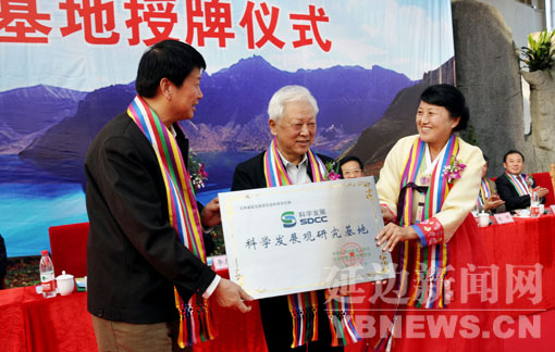 9月25日,中国科学社会主义学会科学发展观研究委员会在延边国贸农业科技文化园成立“科学发展观研究基地”。在当天举行的授牌仪式上,全国人大常委会副委员长、民革中央主席、中国黄河文化经济发展研究会名誉会长周铁农,十五届中央委员、原江西省委书记、中国科学社会主义学会科学发展观研究专业委员会会长舒惠国出席仪式并为基地授牌。邓凯、李龙熙、金硕仁、高勇等领导出席仪式。