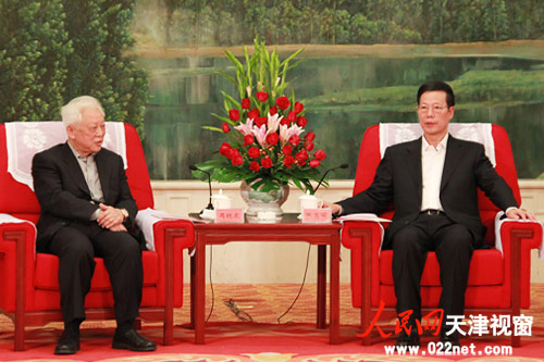 中共中央政治局委员、天津市委书记张高丽(右)与全国人大常委会副委员长、
